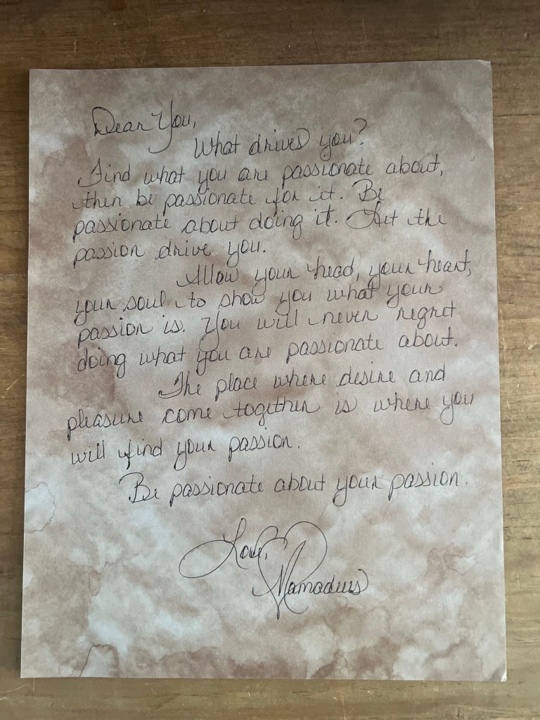 Allow your head, your heart, your soul, to show you what your passion is. You will never regret doing what you are passionate about.